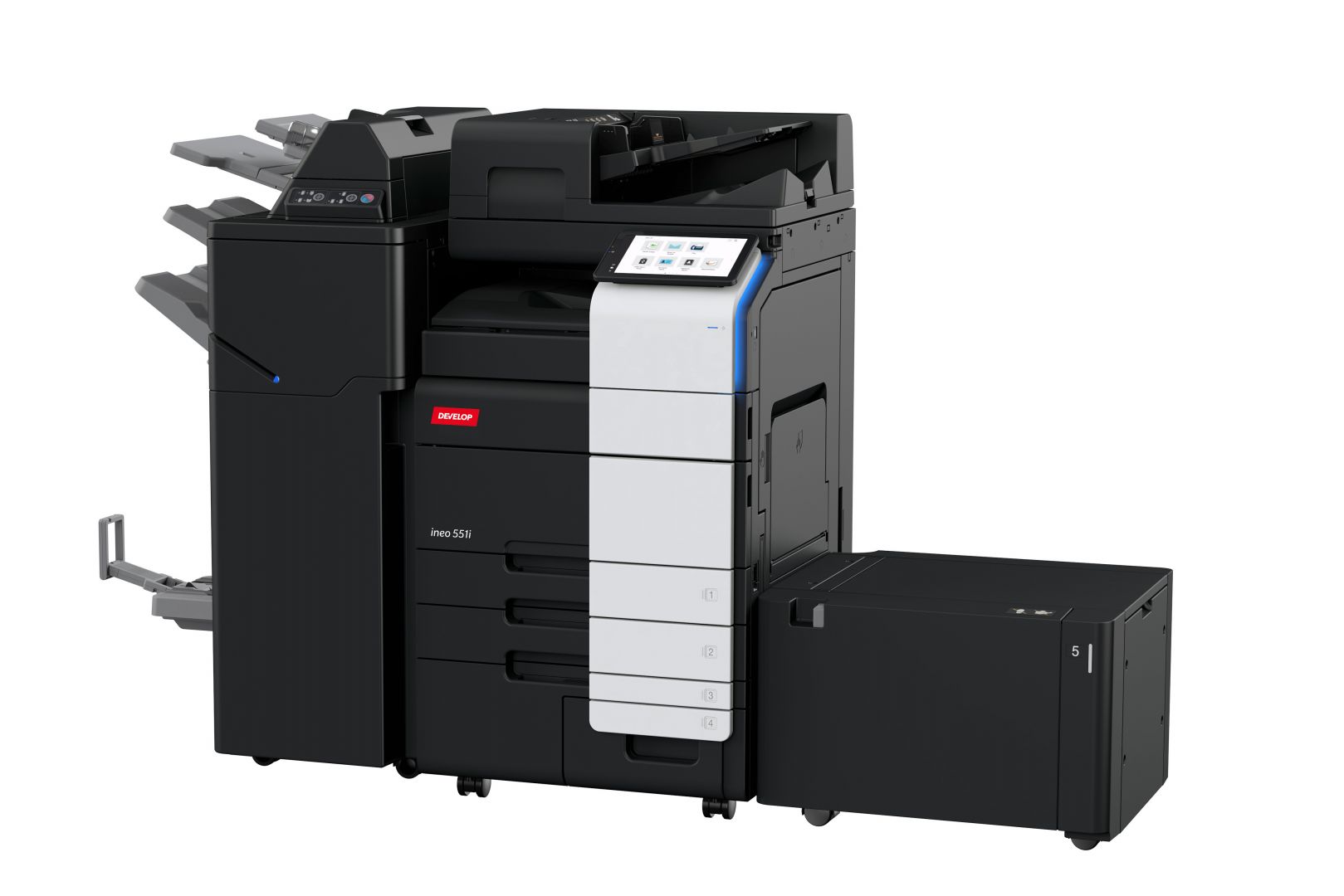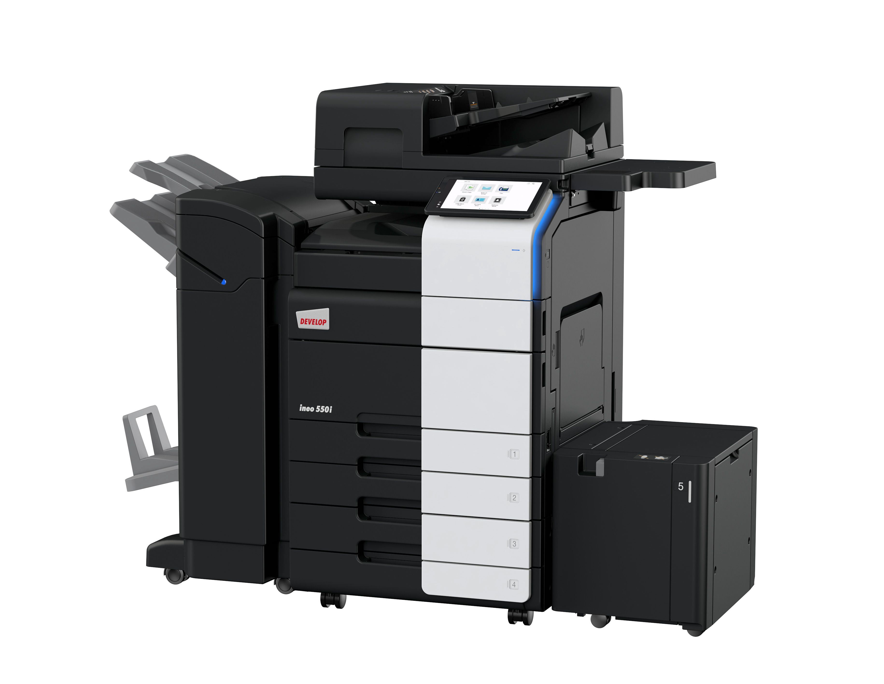 The range of MFPs that we offer are fast too, with print and copy speeds ranging from 22 pages per minute to 38 pages per minute. In addition, they all provide fast networking with Giga Ethernet as standard, multi-bit technology and much faster processors. All the models offer extensive finishing options the like of which has never been seen on such compact machines.